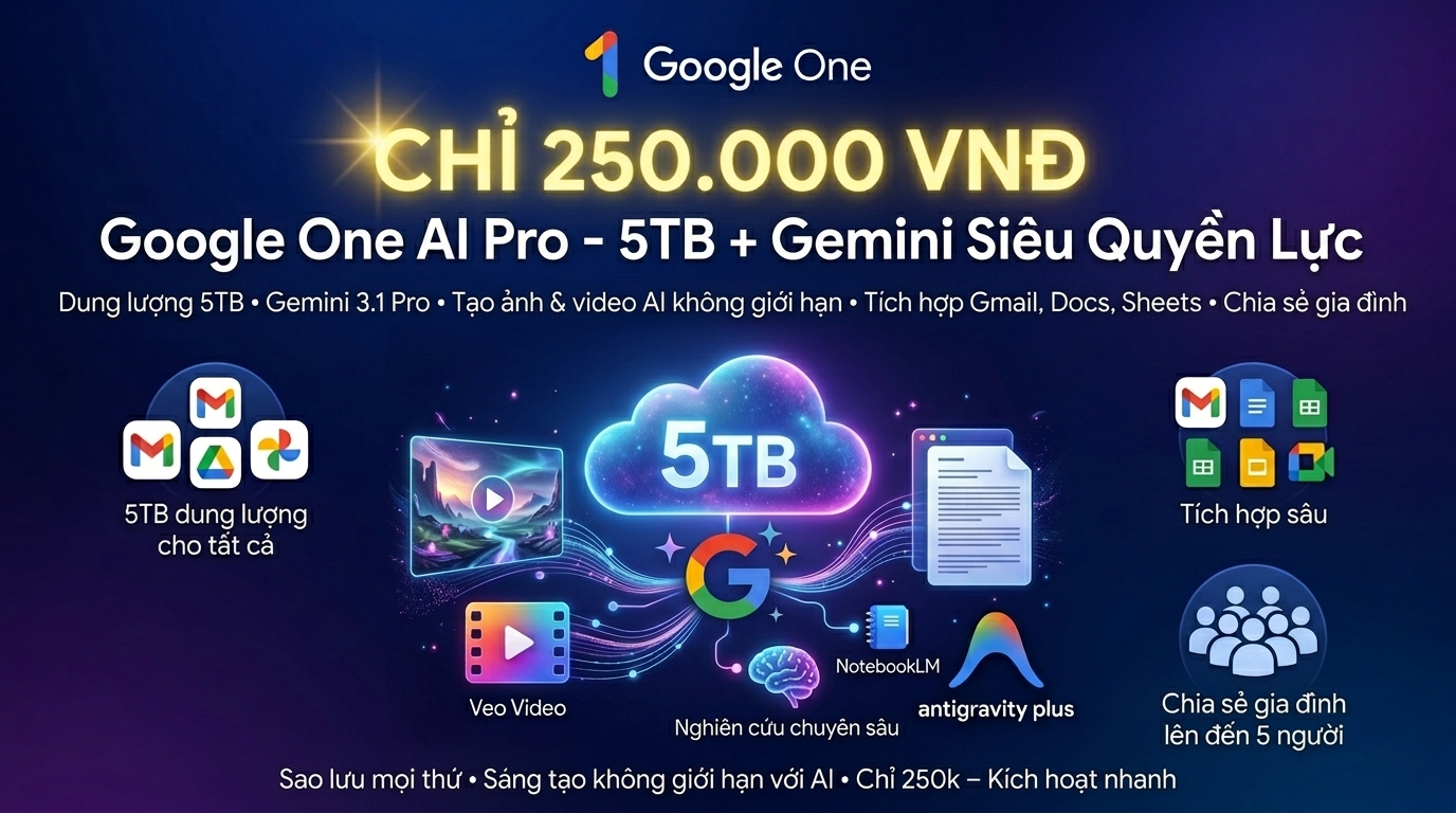 Google One AI Pro 12 Tháng - Chỉ 250.000đ